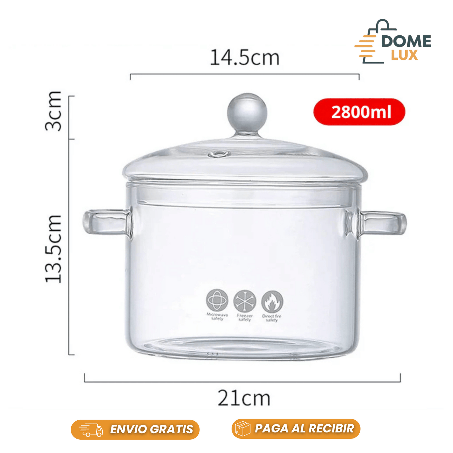 ✅ Fabricada en vidrio borosilicato de alta resistencia térmica.